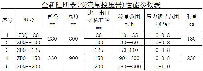 阻斷器又稱變流量控壓器,不分型號(hào),每臺(tái)阻斷器通過流量范圍寬,可用調(diào)節(jié)桿任意設(shè)定每種口徑阻斷器所需要流量,設(shè)計(jì)、選購時(shí)只按阻斷器口徑選擇阻斷器,根據(jù)建筑供暖面積和市政供暖壓力現(xiàn)場(chǎng)設(shè)定流量。避免由于設(shè)計(jì)院設(shè)計(jì)的參數(shù)與供熱公司實(shí)際供暖參數(shù)不相符造成的阻斷器型號(hào)不適應(yīng)的弊端。同時(shí)阻斷器不存在內(nèi)循環(huán),沒有內(nèi)部能耗,節(jié)約能量,供熱能力足,是很好的阻斷器。